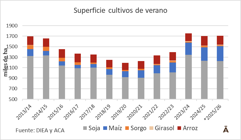La encuesta de intención de siembra de DIEA confirmó a la soja manteniendo su rol central en la agricultura de verano, mientras que el maíz tendría su mayor superficie de implantación desde que se llevan registros.