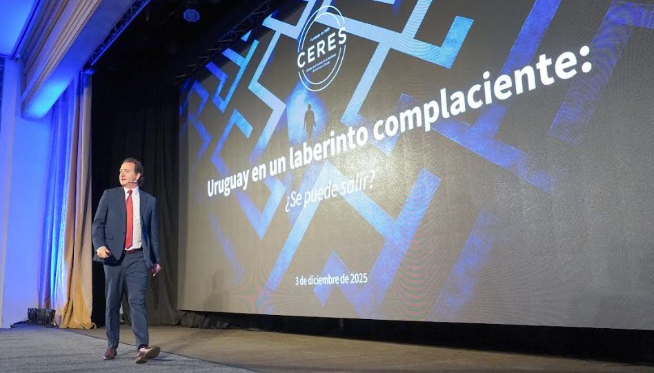 El economista Ignacio Munyo, director ejecutivo del Centro de Estudios de la Realidad Económica y Social (CERES), expuso este miércoles 3 ante unos 500 empresarios en el Radisson Victoria Plaza sobre “Uruguay en un laberinto complaciente”, una presentación que acompañó con una pregunta central: “Se puede salir?”.