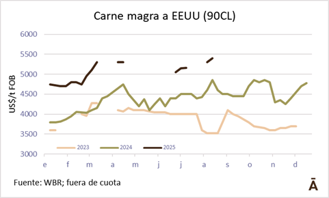 Es claro que la necesidad por carne vacuna es muy grande en Estados Unidos y a eso contribuye el arancel de 76,4% que debe pagar el producto brasileño —que lo deja virtualmente fuera del mercado— además de la prohibición de ingreso de ganado desde México, que nutre corrales de engorde fundamentalmente del sur del país.