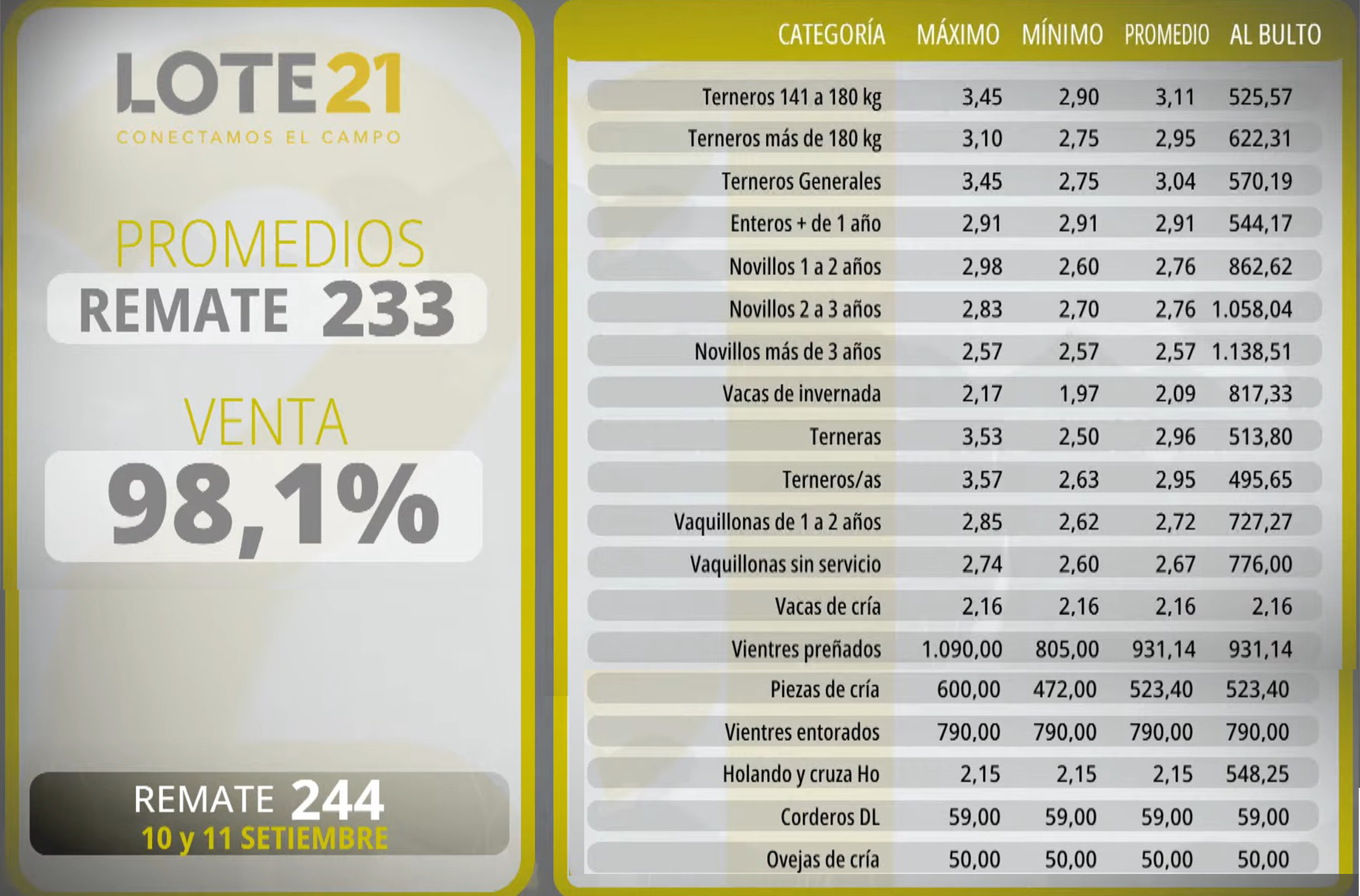 Lote 21 ya planifica su remate 234, que se llevará a cabo los días 10 y 11 de septiembre en el marco de la Expo Prado 2025. Gaudín adelantó que la subasta contará con novedades a nivel de marketing y comunicación, buscando potenciar la visibilidad de la oferta en uno de los eventos ganaderos más importantes del país. “Estamos muy entusiasmados y con la cabeza puesta en ese evento”, afirmó.