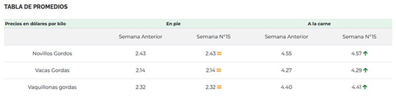 El valor de referencia de los novillos especiales de exportación se mantuvo sin cambios en la semana a US$ 4,62 el kilo carcasa, en tanto que otras categorías, como los especiales de abasto y los gordos buenos de exportación aumentaron 1 y 2 cents, respectivamente.