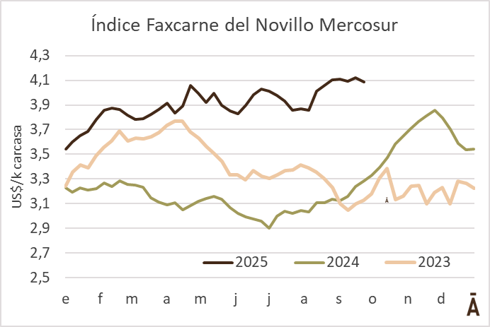 Desde mediados de la semana pasada los precios de los animales a faena se mantienen dentro del mismo rango, algo que hacía varias semanas no pasaba. Da la sensación de que, con algunas plantas sin actividad y el retiro de los equipos kosher, la demanda está con una actitud algo menos compradora y la oferta, con el avance de una primavera casi ideal, comienza de a poco a crecer.