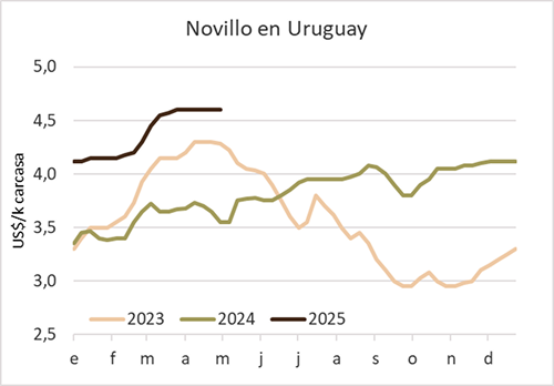 “Los novillos especiales de pradera quedaron clavados esta semana en US$ 4,65-4,70 por kg y hay algunas plantas que puntualmente estamos tratando de esquivar porque están apareciendo problemas con los rendimientos”, dijo a informe el operador Joaquín González.