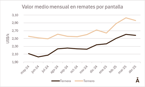 En el año a fin de abril se comercializaron 58.011 terneros y 19.213 terneras en los tres principales consorcios de ventas por pantalla (Plazarural, Pantalla Uruguay y Lote 21), con un sólido aumento respectivo de 18% y 19% respecto a los mismos cuatro meses del año anterior.