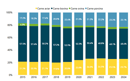 El consumo total de carne por habitante en Uruguay alcanzó los 99,3 kilos per cápita, experimentando un incremento en 2024 y revirtiendo una tendencia a la baja que predominó desde 2018. Este aumento, representa un crecimiento de 5 kilos por habitante con respecto al año anterior y se calcula en base a los volúmenes de carne comercializados en el mercado interno, tanto de origen nacional como importado, sumada la faena predial, la cual representó un 62% del consumo en 2024, según los datos publicados por el Instituto Nacional de Carnes (INAC).