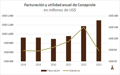 La principal industria láctea del país cerró su año fiscal 2022/23 el pasado 31 de julio con una facturación récord. Así se desprende del balance contable que la cooperativa (con sus colaterales) presentó ante el Banco Central del Uruguay (BCU). El grupo Conaprole cerró su balance con ingresos por US$ 1.305 millones, con un aumento de US$ 129 millones frente al máximo anterior del ejercicio 2021/22 (US$ 1.176 millones). Los ingresos por exportaciones se incrementaron en unos US$ 20 millones el último a año, a US$ 685 millones, mientras que el mercado interno elevó su facturación en dólares corrientes en unos US$ 120 millones el último año a US$ 668 millones. La caída del tipo de cambio jugo a favor de estos mayores ingresos en dólares del mercado interno para la cooperativa.