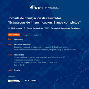 Jornada de divulgación de resultados “Estrategias de intensificación: 2 años completos” de la Red Tecnológica de la Cadena Láctea (RTCLP).