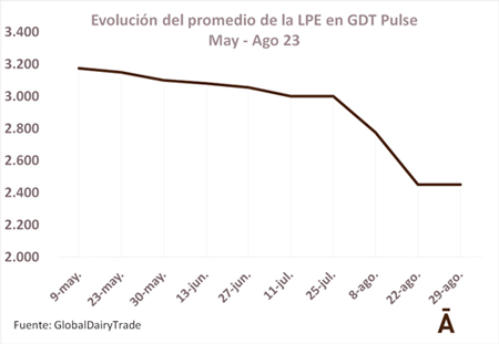 Tras un fuerte descenso en la cotización de la leche en polvo entera (LPE) en la última licitación Pulse, de la plataforma electrónica Global Dairy Trade (GDT) de Fonterra, ayer se mantuvo estable el precio de este producto, sin grandes variaciones en el volumen ofertado.