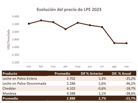 Este martes 5 de setiembre se realizó la licitación 339 en la plataforma electrónica GlobalDairyTrade (GDT) donde comercializa principalmente la empresa neozelandesa Fonterra. Tras el cierre de la subasta, se marcó un repunte en los precios de varios productos lácteos comercializados, entre ellos la leche en polvo entera (LPE) que recuperó un 5,3% su valor respecto al mínimo que había tocado en el remate previo.