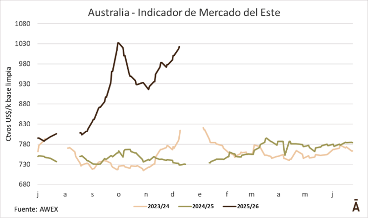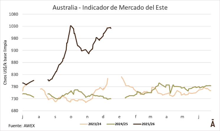 La penúltima semana de ventas del año 2025 mostró un escenario positivo para el mercado lanero australiano, con subas generalizadas en casi todos los micronajes, frente a una demanda firme, aun con niveles de oferta que superaron los volúmenes habituales para esta altura del año.